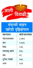 साडेतीन मुहूर्तापैकी एक असलेल्या दिवाळीच्या मुहूर्तावर पुणेकरांनी यंदा वाहन खरेदीत उत्साहाने सहभाग नोंदवला आहे. वसुबारस, धनतेरस, लक्ष्मीपूजन आणि पाडवा या दिवाळीतील शुभमुहूर्तांदरम्यान एकूण १३ हजार ३८७ नवीन वाहनांची नोंदणी झाली. यात ८ हजार ७६३ दुचाकी आणि २ हजार ७८६ चारचाकींचा समावेश आहे. तर, इतर अन्य वाहने आहेत. गतवर्षीच्या तुलनेत यंदा वाहनखरेदीत किंचित वाढ झाली आहे.