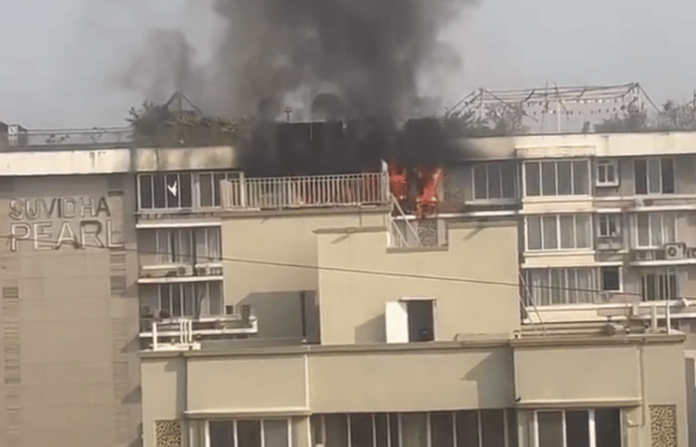 #WATCH | Mumbai: Fire breaks out in Suvidha Pearl Building at Vile Parle, East Mumbai area. Dousing operation underway. More details awaited. pic.twitter.com/BdMu3i9KWU