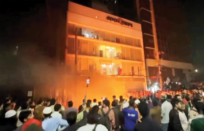 - प्रोथोम अलो, डेली स्टार पेपरचे कार्यालय जाळले