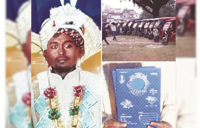 उत्तर प्रदेशातील देवरिया जिल्ह्यातील खुखुंडू परिसरात एक अनोखी लग्नाची मिरवणूक पाहायला मिळाली. भाथर मोहल्ला येथील रहिवासी दुर्गेशचे 30 नोव्हेंबर रोजी लग्न होते. दुर्गेश हा व्यवसायाने रोजंदारीवर काम करणारा कामगार आहे. त्याच्या वडिलांचे निधन झाले होते, त्याच्याकडे लग्नाच्या वरातीत घेऊन जायला गाडी नव्हती, व्यवस्था करण्यासाठी पुरेसे पैसे नव्हते, त्यामुळे त्याच्या मित्रांनी आर्थिक मदत केली आणि वरातीसाठी सुमारे 30 ई-रिक्षा तयार केल्या आणि त्यानंतर दुर्गेशची लग्नाची वरात ई-रिक्षाने नेण्यात आली. गावकरी आणि ये-जा करणाऱयांनी या उपक्रमाचे कौतुक केले आहे. सोशल मीडियावर ही पोस्ट @WDSiddiqui2011 या एक्स (ट्विटर) अकाऊंटवरून शेअर करण्यात आली आहे.