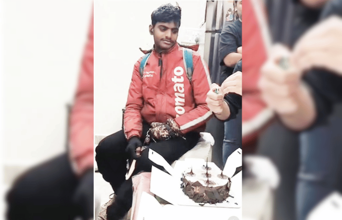 वाढदिवशी कामात व्यस्त असलेल्या एका झोमॅटो रायडरचा व्हिडीओ सोशल मीडियावर चर्चेत आला आहे. एका ग्राहकाने त्यांचा वाढदिवस साजरा करून लाखो नेटकऱयांचे मन जिंकले आहे. व्हायरल व्हिडीओमध्ये दिसत आहे की, ग्राहकाच्या कुटुंबाने झोमॅटो डिलिव्हरी एजंटचा वाढदिवस अगदी साध्या पद्धतीने पण आपुलकीने साजरा केला. ग्राहकांने केक मागवला आहे. मेणबत्ती पेटवून केकवर लावली आहे. उपस्थित मंडळी टाळ्य़ा वाजवतात आणि हॅपी बर्थडे म्हणत आहे. हे सगळं पाहून झोमॅटो डिलिव्हरी एजंट थक्क झालेला दिसत आहे. ग्राहकांनी त्याचा वाढदिवस साजरा केलेला पाहून त्याच्या डोळय़ात पाणी दाटले आहे.
