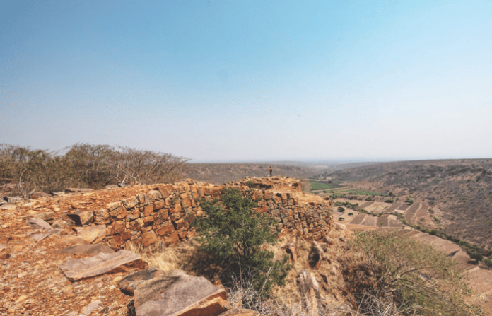 किल्ल्याला सुमारे 18 भक्कम बुरुजांनी तो सुरक्षित केला आहे. उत्तरेस किल्ल्याचे गोमुखी द्वार मराठा शैलीची आठवण करून देतो. किल्ल्याच्या दक्षिणेला दुहेरी तटबंदी बांधून किल्ला सुरक्षित केला आहे. इथले वैशिष्टय़ म्हणजे या भिंती आणि बुरुज हे काळजीपूर्वक रचलेल्या दगडांच्या भिंती आहेत. त्यांना कशानेही बांधलेले नाही. त्या काळी बांधकाम पर्यावरणपूरक होते, याची साक्ष इथे पादोपदी मिळते.