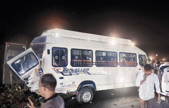 महाबळेश्वरहून कल्याणकडे जाणाऱ्या मिनी बसचा टायर बोरघाटात अचानक पंक्चर झाला. बसचालक टायर बदलण्याचे काम करत होता. याचवेळी ठाकूरवाडी येथील तीव्र वळणावर कारचालकाचे नियंत्रण सुटले. कार मिनी बसवर जाऊन आदळली आणि पलटी झाली. ही धडक इतकी भयंकर होती की बसमधील ३ प्रवासी तर कारमधील पाचजण जखमी झाले.