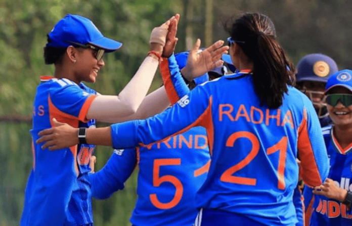 नाणेफेक जिंपून प्रथम फलंदाजी करणाऱया श्रीलंकेचा निर्णय त्यांच्या अंगलट आला. हिंदुस्थानच्या फिरकी गोलंदाजांनी लंकेच्या फलंदाजांना अक्षरशः गुंडाळले. श्रीलंकेचा डाव अवघ्या 118 धावांत आटोपला. राधा यादव हिने 19 धावांत 4 विकेट घेत लंकेची पंबर मोडली. डावखुरी फिरकी गोलंदाज तनुजा पंवरने 20 धावांत 2 तर प्रेमा रावतने 9 धावांत 2 विकेट घेत प्रभावी साथ दिली. श्रीलंकेकडून संजना कविंदीने 31 धावांची झुंजार खेळी केली, मात्र इतरांचा हिंदुस्थानी फिरकीसमोर टिकाव लागला नाही. 10 षटकांत 2 बाद 71 अशा भक्कम स्थिती असतानाही श्रीलंकेचा डाव अचानक कोसळला.