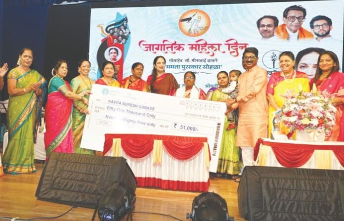 शिवसेना नेते-खासदार अरविंद सावंत यांच्या नेतृत्वाखाली कार्यरत महानगर टेलिफोन निगम कामगार संघाद्वारे संचालित ‘जाणीव ट्रस्ट’तर्फे दरवर्षी जागतिक महिला दिनानिमित्त माँसाहेब सौ. मीनाताई ठाकरे ‘ममता पुरस्कार’ सोहळा आयोजित करण्यात येतो. यंदा हा सोहळा शुक्रवारी शिवाजी महाराज मैदान येथील स्वातंत्र्यवीर सावरकर स्मारक सभागृह येथे संपन्न झाला. या सोहळ्यात लातूर जिह्यातील भटक्या विमुक्त, आदिवासी महिलांसाठी समर्पित भावनेने कार्य करणाऱ्या कविता गोबाडे यांचा रश्मी ठाकरे यांच्या हस्ते माँसाहेब सौ. मीनाताई ठाकरे ‘ममता’ पुरस्कार देऊन सत्कार करण्यात आला. सन्मानपत्र, 51 हजार रुपये आणि स्मृतिचिन्ह असे या पुरस्काराचे स्वरूप आहे.
