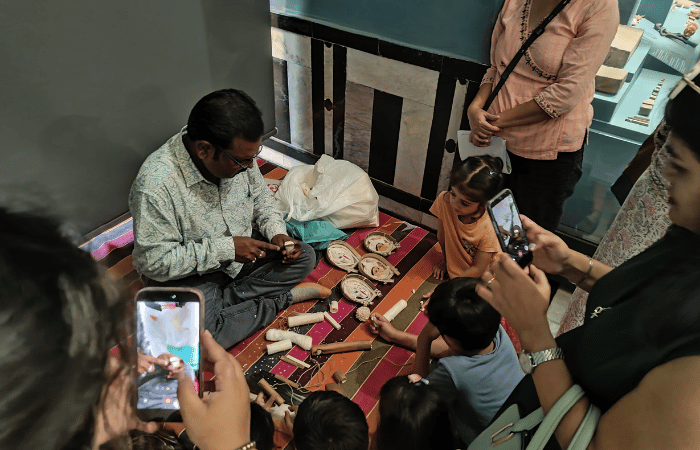 केवळ सादरीकरणेच नव्हे, तर प्राचीन तंत्रज्ञान आणि हस्तकलेची ओळख करून देण्यासाठी विविध प्रात्यक्षिकांचेही आयोजन करण्यात आले होते. यामध्ये ‘विव्हर्स सेंटर’तर्फे हँडलूम विणकामाचा अनुभव, कलाकार अरुप मलाकर यांच्याकडून ‘शोलापीठ’ फुलनिर्मिती आणि अन्वर हुसैन शेख यांनी सादर केलेली ‘दगडी साधननिर्मिती’ या उपक्रमांनी प्रेक्षकांना थक्क केले. या उपक्रमातून छत्रपती शिवाजी महाराज वस्तुसंग्रहालयाने केवळ वारसा जतन करण्याचा संदेशच दिला नाही, तर सामान्य नागरिक आणि कलाकारांमध्ये थेट संवादाचा एक दुवा निर्माण केला.